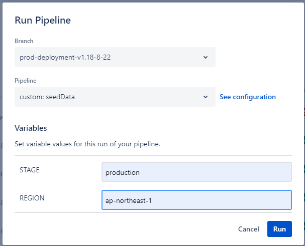 c. Run seedData: At the meantime, The Bitbucket pipeline runs seed yarn file automatically.
