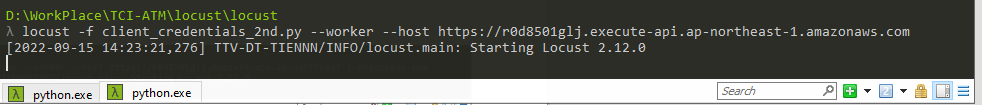 Step 2: After created the file above, we start Locust (Distributed load generation) to run stress test.