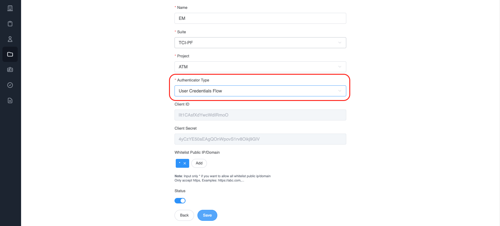 Authenticator TypeisUser Credentials Flow