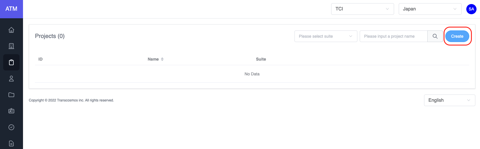 - Click on Create button to create a new project