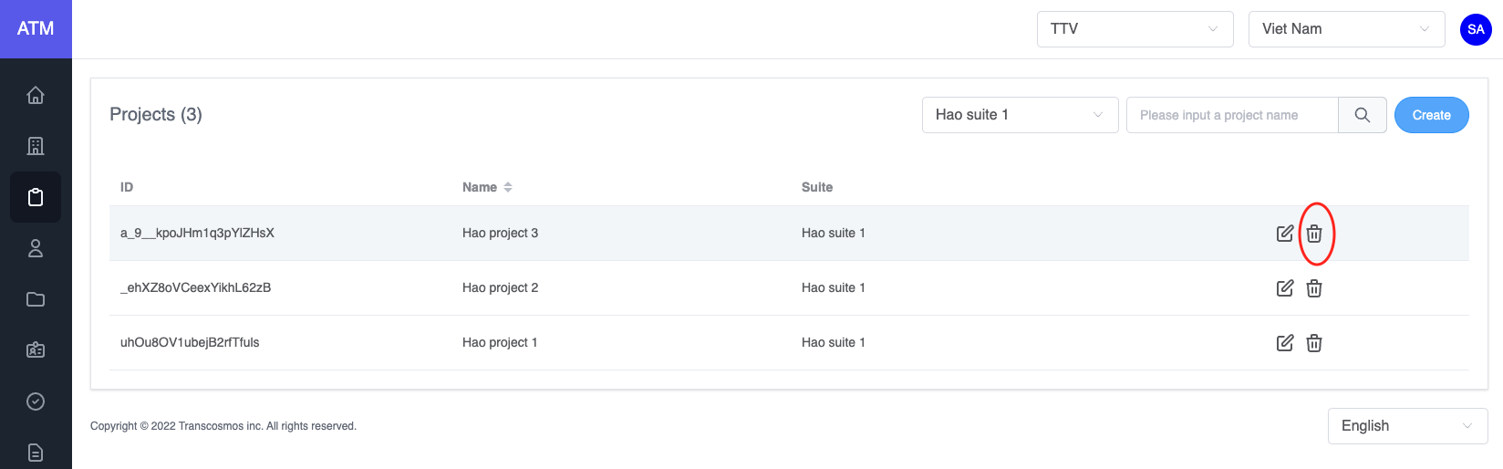 - Warning: If the project had an application or user, you can not delete it and the system will display an error message. Please delete application or user of this project and then delete project