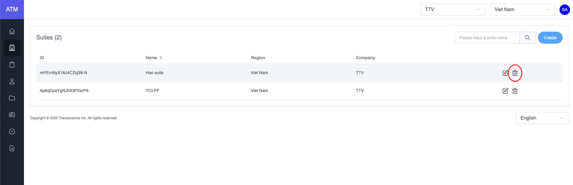 - Warning: If the suite had project, user can not delete it. Please delete the project of this suite first and then delete the suite.
