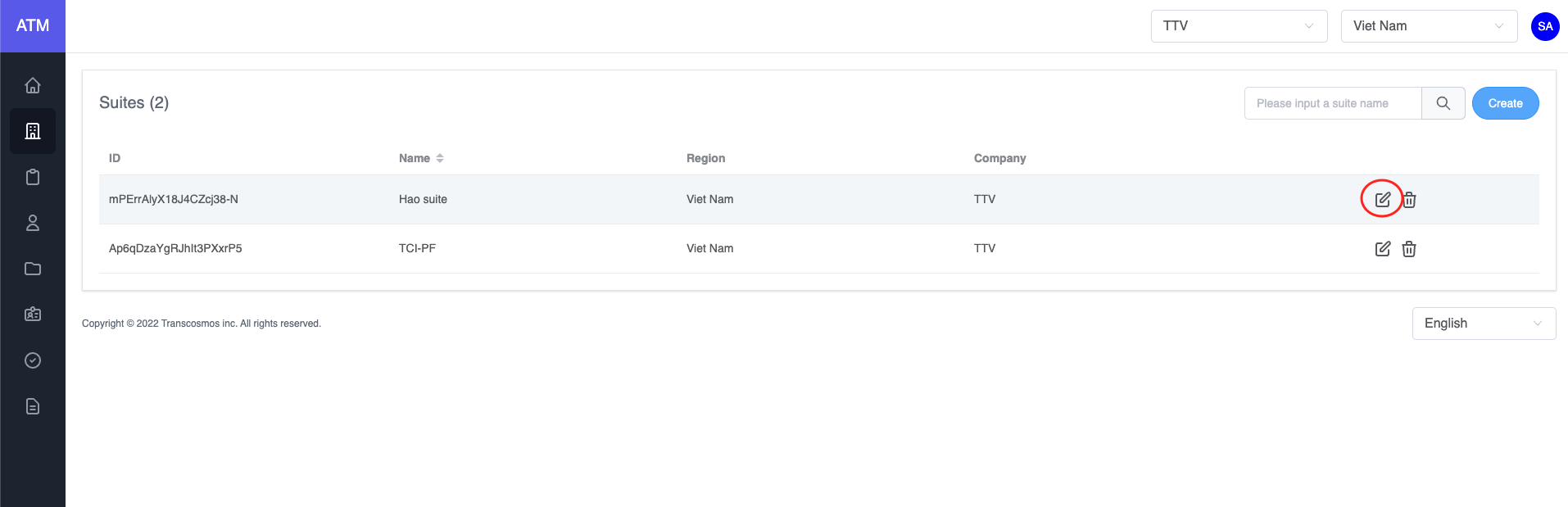 - On the suite grid, click on the edit icon of record where you want to update the suite